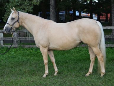 Milly (owned by Mike Jenson) is a 2018 palomino mare by Tejons White Gold (Moose). This is one of 3 foals that Moose produced before his premature passing.